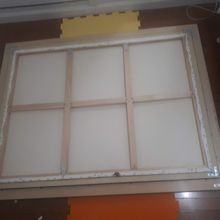 Everything came together thankfully! Nothing had been broken while travelling, the canvas itself was in great condition & most importantly the oil paint wasn't damaged. Game on.